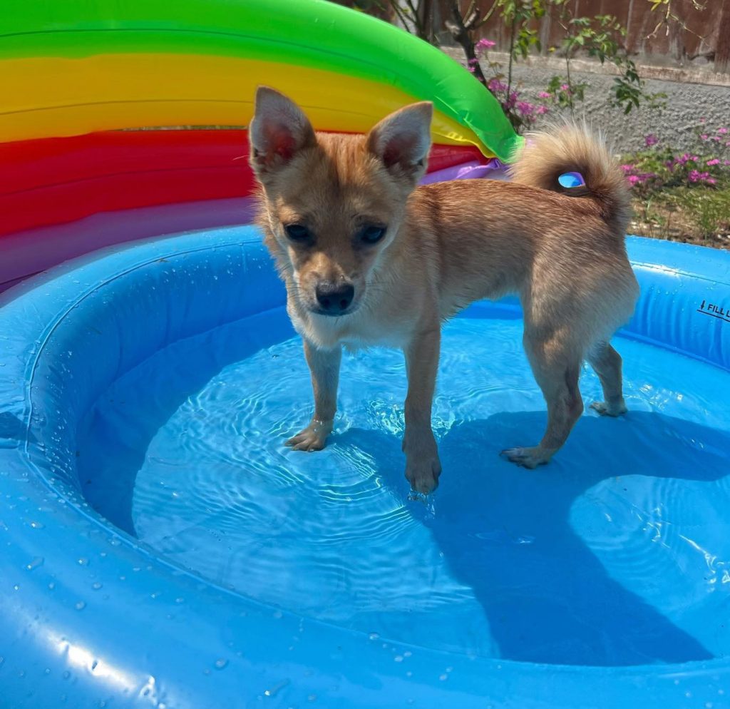 Adoro brincar com meus brinquedos de pelúcia, tenho um montão deles! Também me divirto quando meus pais me levam para passear de carro e vamos todos para a praia tomar água de coco no calçadão. Meu namorado é o Lucky e todas as tardes nos encontramos na pracinha, nos cheiramos muito e trocamos lambeijos. Au au para todos!”