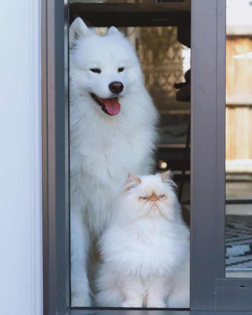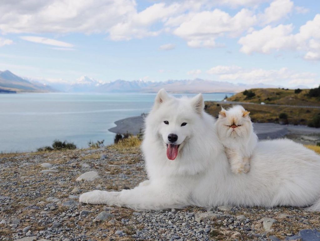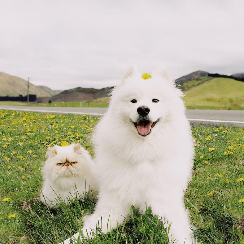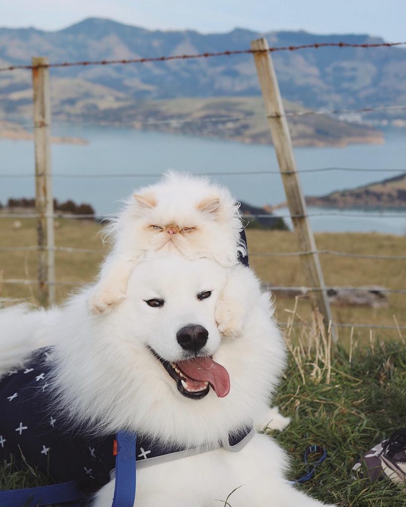 A mais nova sensação do mundo pet no Instagram é Casper e Romeo. A dupla de animais de estimação pertence a Rinsa Li de Christchurch, de Nova Zelândia. Casper é um cão da raça Samoieda sorridente, enquanto Romeo é um felino de aparência rabugenta. Ambos os amigos peludos são incrivelmente fofos e adoram aventurar-se juntos.