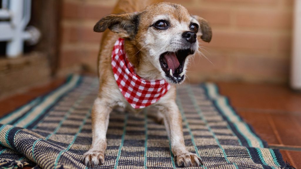 Latidos lentos e graves. Quando o latido é contínuo, baixo ou rosnado, tome cuidado: ele está sinalizando que está pronto para se defender.