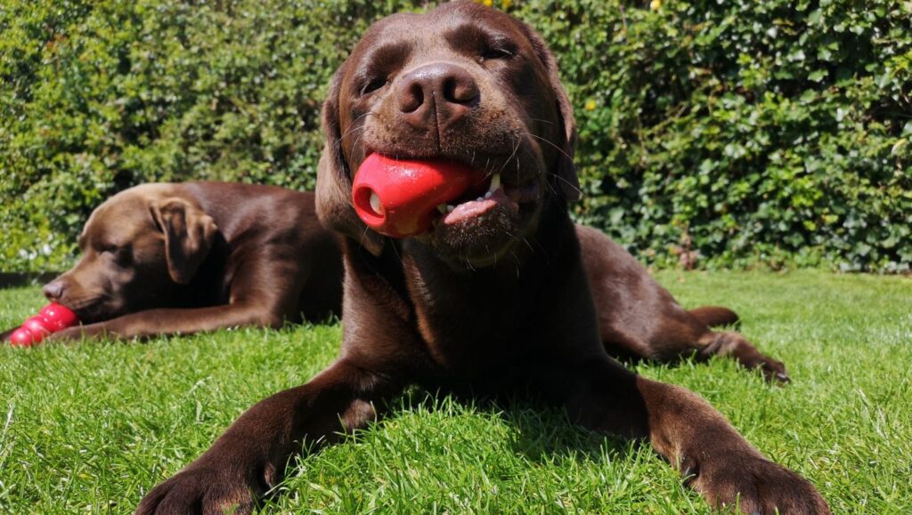 - Brinquedos recheáveis: Use brinquedos próprios como Kongs, bolas dispenser ou até ossos de nylon recheáveis. Você pode recheá-los com patê, ração úmida, petiscos e, para prolongar a diversão, congelar o brinquedo.