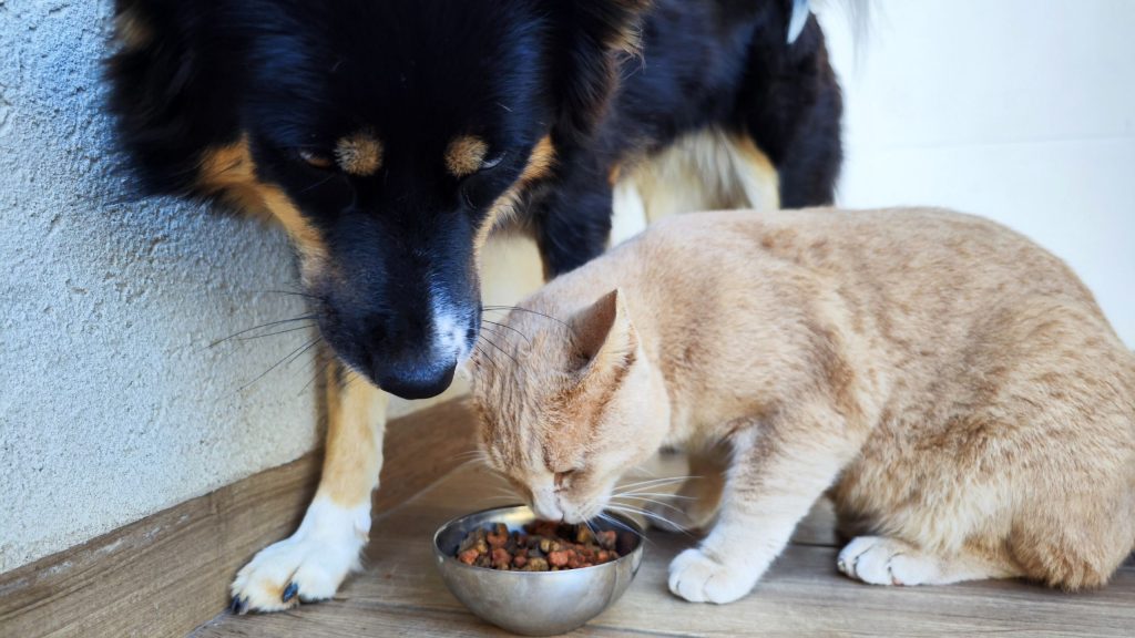 Tudo bem que há cães e gatos que convivem juntos e costumam “beliscar” a comida do companheiro. Uma provinha aqui e ali, ok. Mas evite que isso se torne uma atividade rotineira na dieta de seus pets. Neste caso, procure alimentá-los em locais diferentes ou alimente seu bichano em um local elevado, fora do alcance do seu doguinho. Isso porque caninos e felinos têm necessidades nutricionais distintas, portanto, alimentar seu cachorro com a comida do bichano regularmente e vice-versa pode causar problemas de longo prazo para a saúde de ambos.