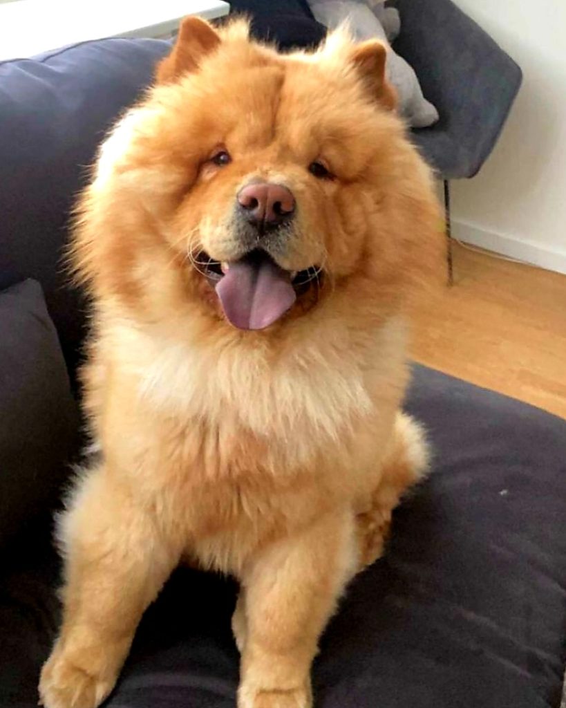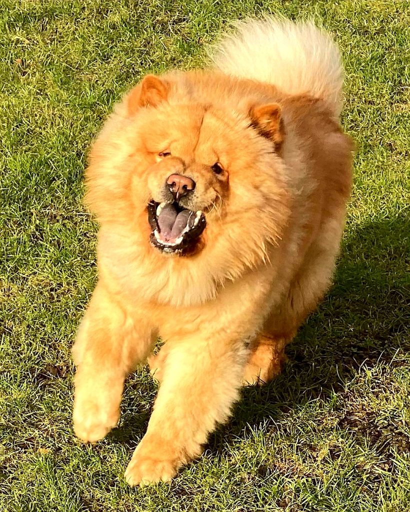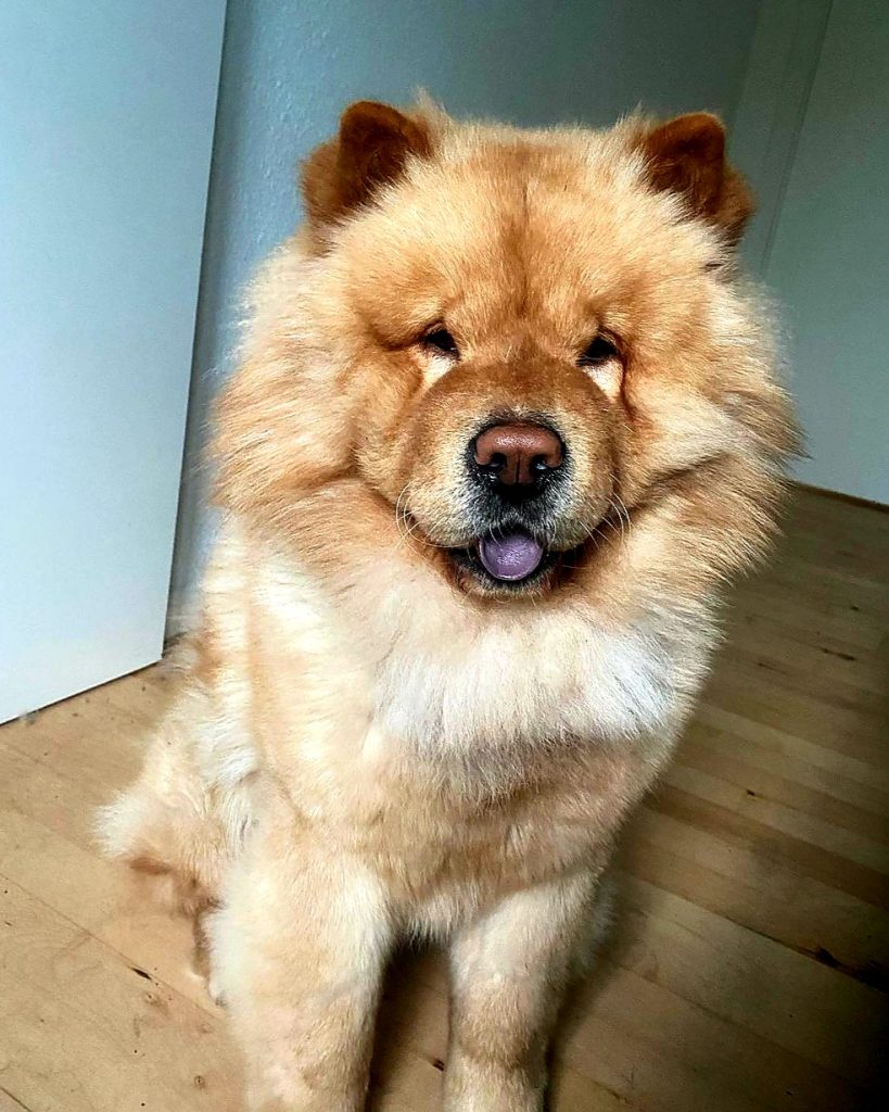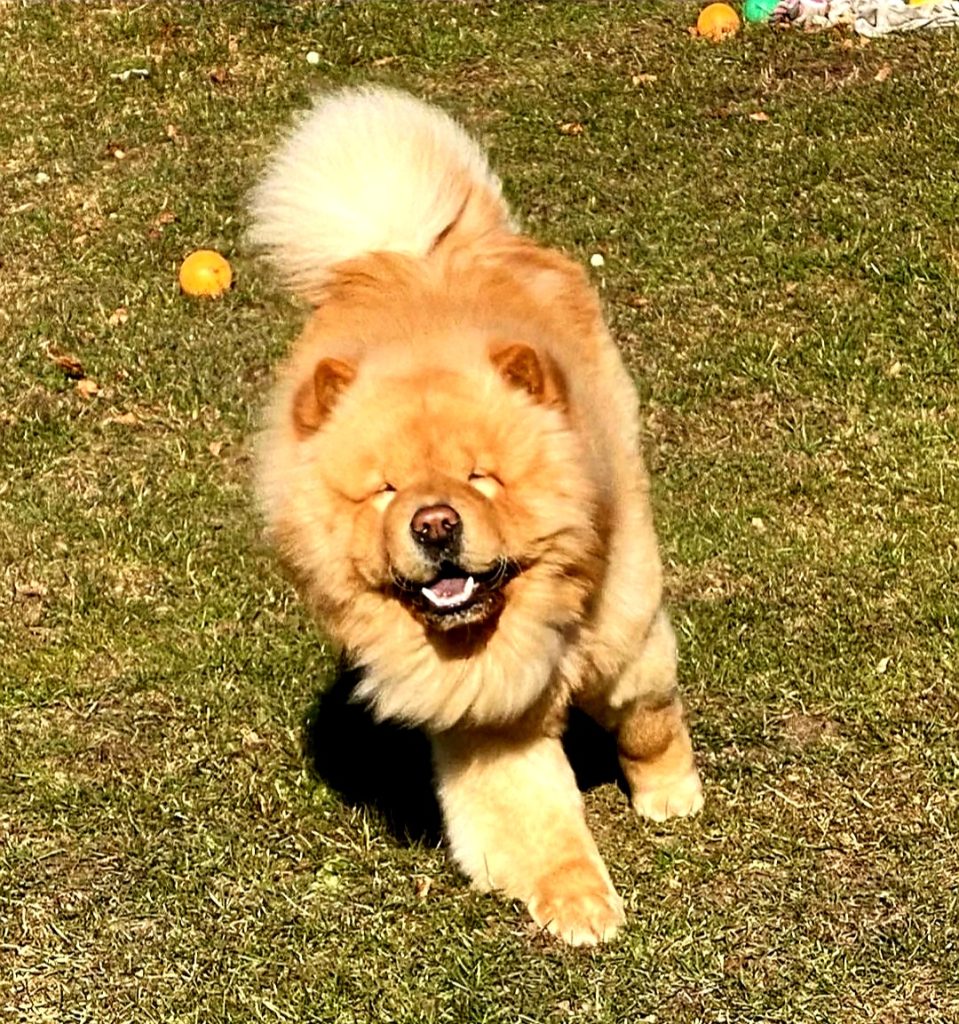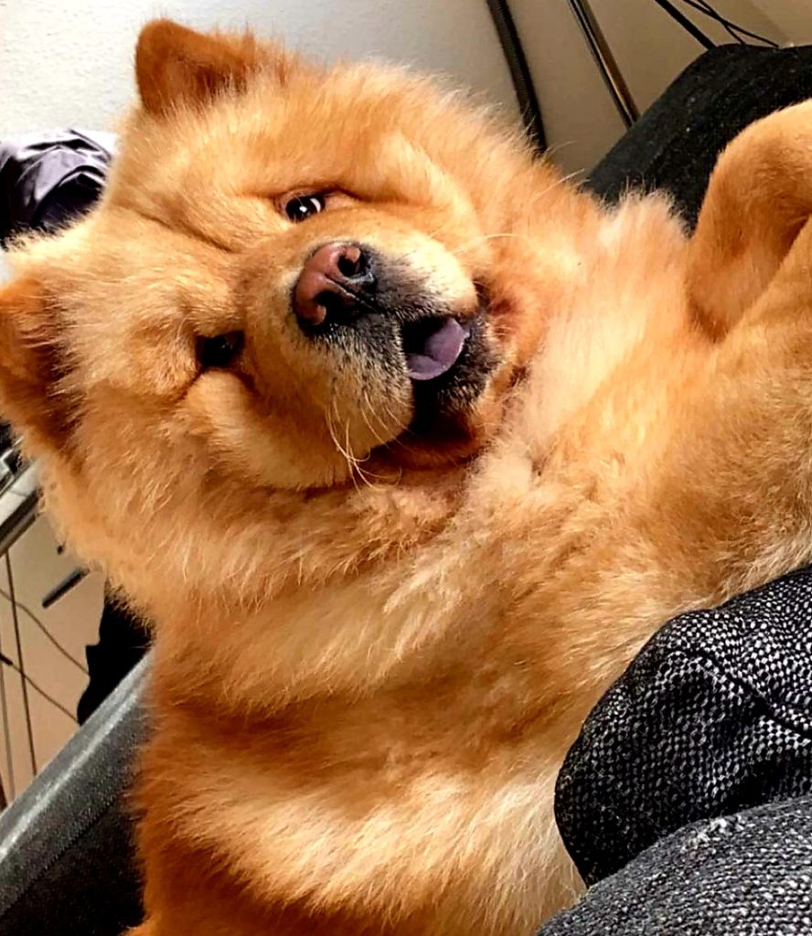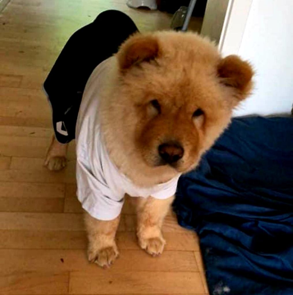 “Esse fofão é o nosso Gucci, um chow chow de 4 anos que é nossa alegria. Ele é muito dengoso e seu passatempo favorito é comer, comer e comer! Se piscarmos os olhos, ele rouba o bife de nosso prato!