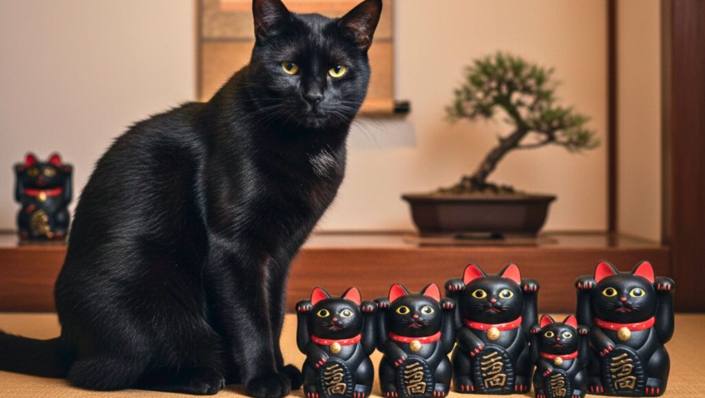 • Japão: No Japão, acredita-se que os maneki nekos (estatuetas de porcelana conhecidas como Gato da Sorte ou Gato do Dinheiro) proporcionam segurança e fortuna ao seu dono, afastando o mal e atraindo prosperidade. São encontrados, principalmente, nas cores branco e preto (boa sorte e proteção contra os maus espíritos).