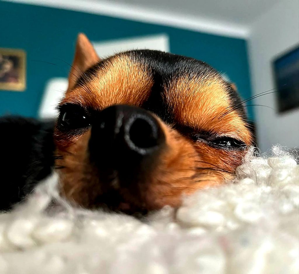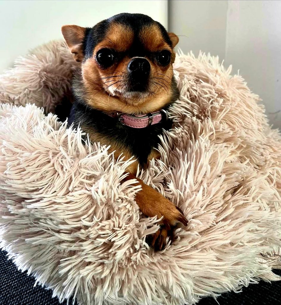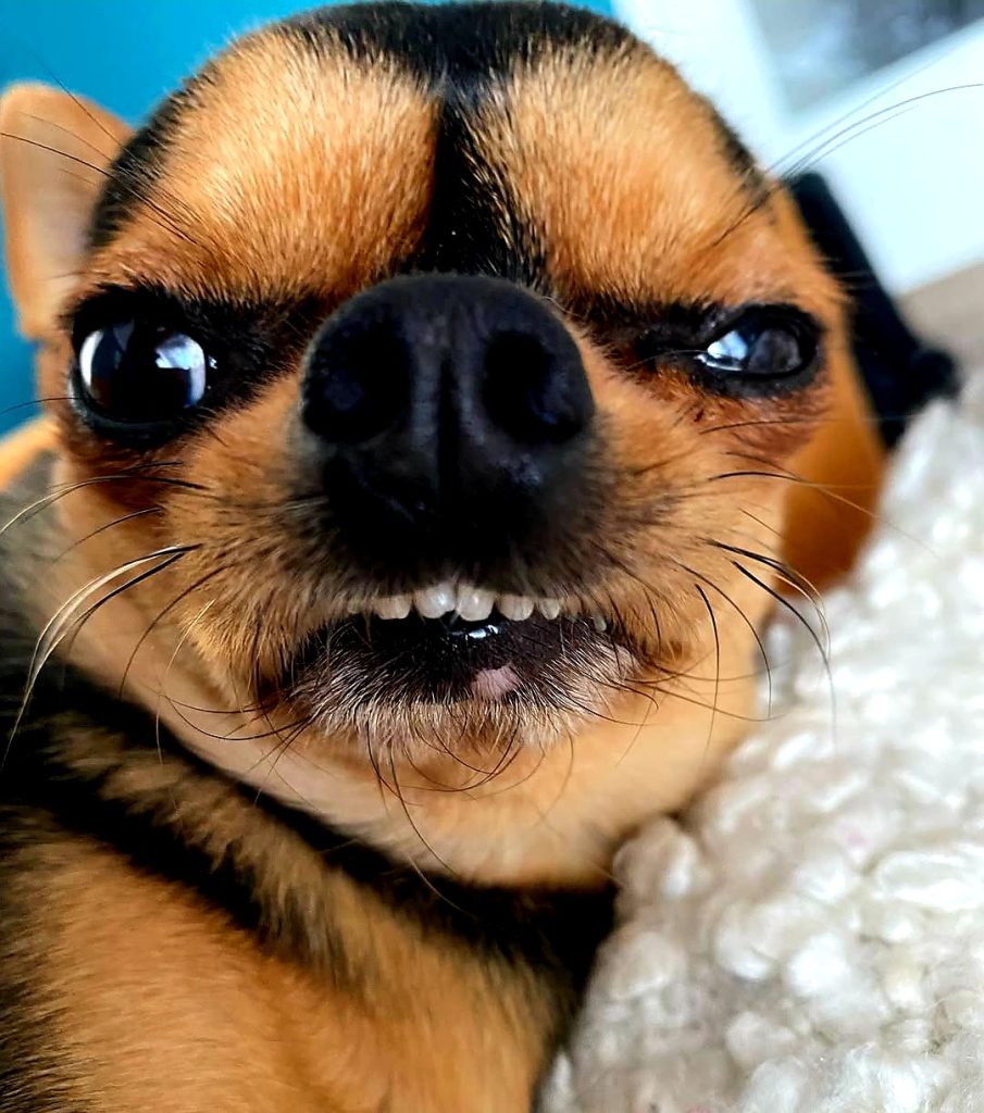 “Au, au, turma! Eu sou a Jujuba e tenho 4 anos. Sou puro amor, mas às vezes sou puro ódio se me perturbam. Só porque sou pequenininha esses humanos ficam querendo me agarrar toda hora. Coloco logo pra correr! Mamãe diz que sou temperamental, mas sou maravilhosa!
