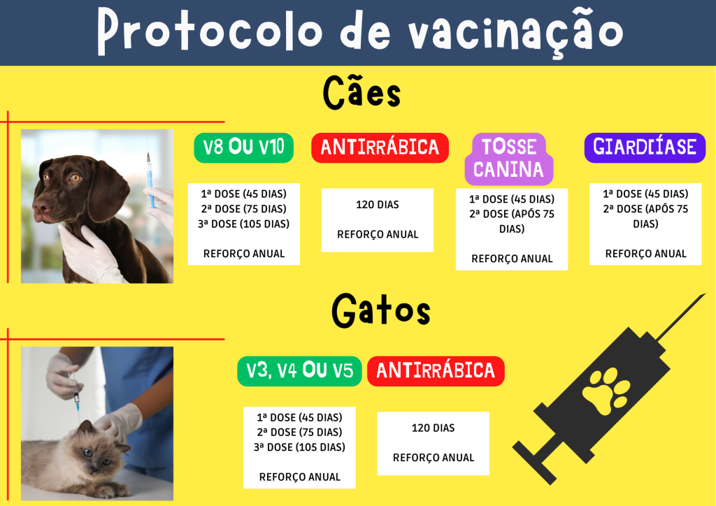 Já os gatos precisam ser imunizados contra rinotraqueíte, calicivírus e clamidiose, entre outros males. No caso dos felinos, são recomendadas a V3, V4 ou V5.